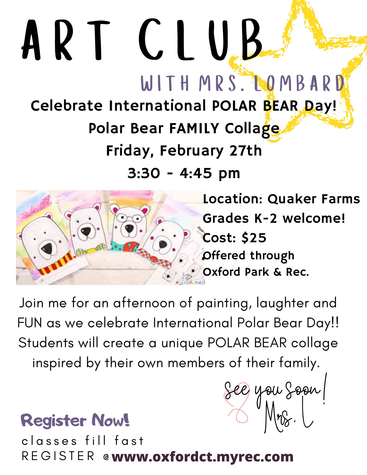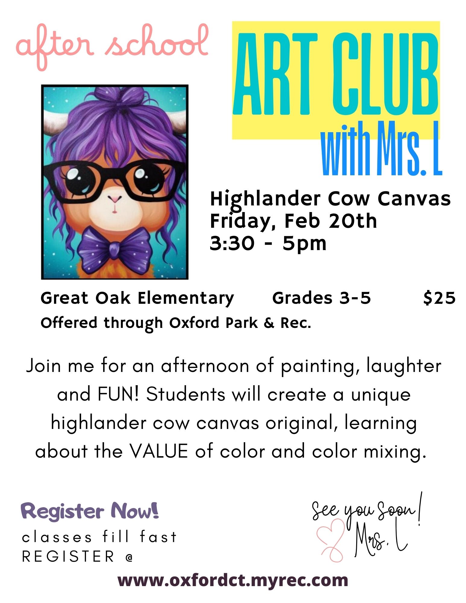 Notes: Students will need to bring a note for the office, stating they will be attending Mrs. Lombard's Art Club.